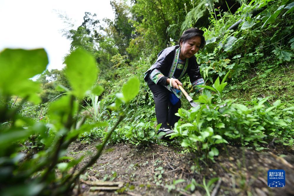 烏英苗寨婦女梁足英在山上收割藍靛草(2023年8月29日攝)。新華社記者 黃孝邦 攝