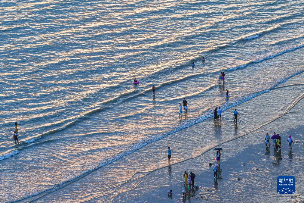 游客在海南省三亞市三亞灣游玩(8月30日攝)。三亞灣位於海南省三亞市主城區南部,海域面積75平方千米,是三亞市作為著名旅游目的地的重要資源依託。