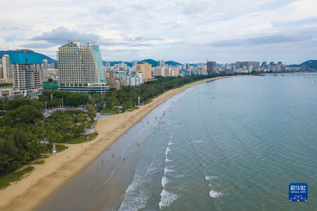 海南省三亞市三亞灣景色(無人機照片,8月30日攝)。三亞灣位於海南省三亞市主城區南部,海域面積75平方千米,是三亞市作為著名旅游目的地的重要資源依託。