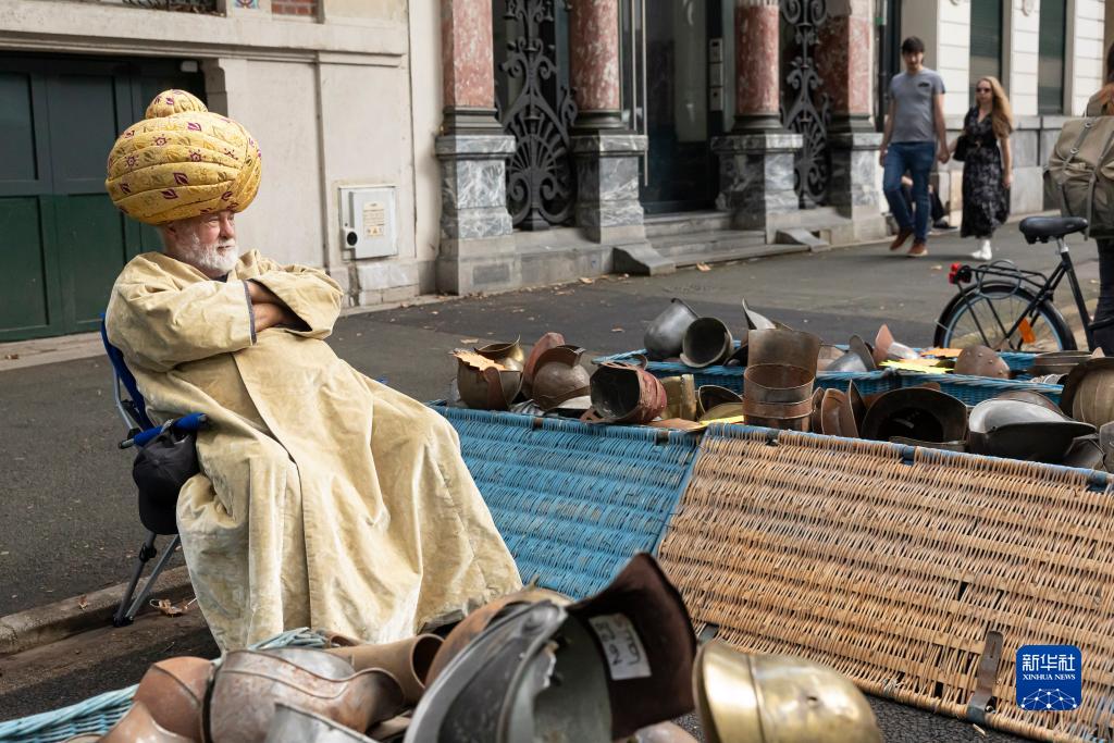 9月2日,在法國北部城市裏爾的舊貨市場,一名攤主等待顧客。
