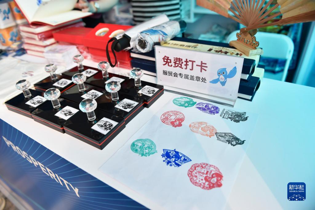 9月2日在首鋼園區一個服貿會官方特許商品店拍攝的“福燕”形象打卡印章(9月2日攝)。
