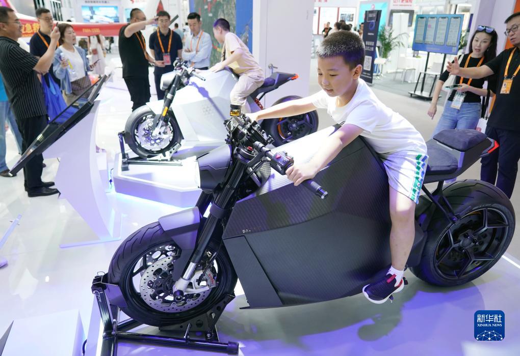 9月3日,一名小朋友在首鋼園體驗電動摩托車。