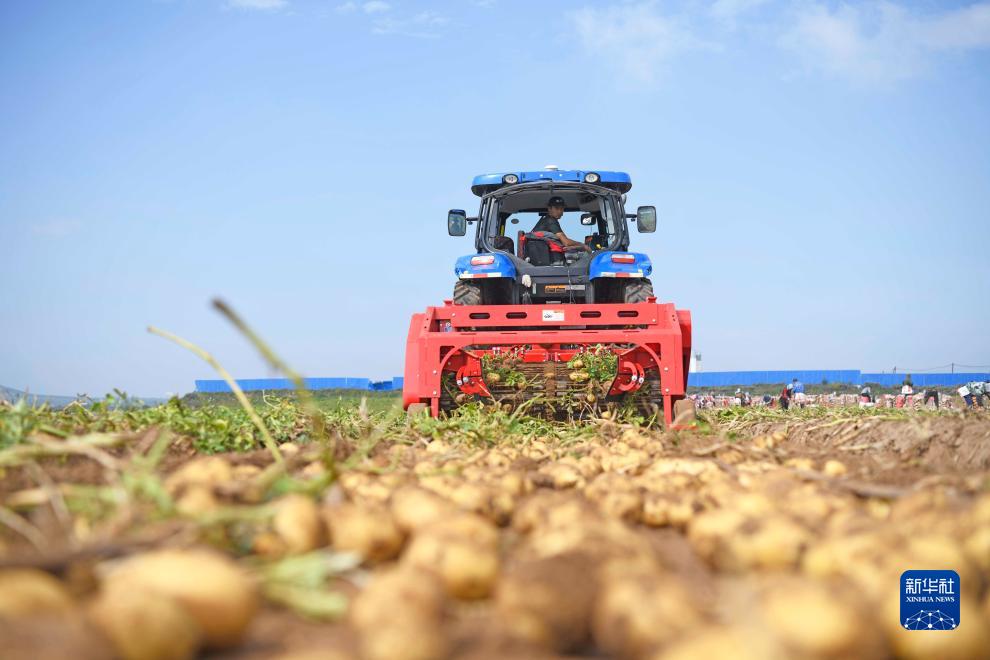 9月3日,河北省圍場滿族蒙古族自治縣禦道口鎮禦道口村一家馬鈴薯種植合作社社員在收穫馬鈴薯。