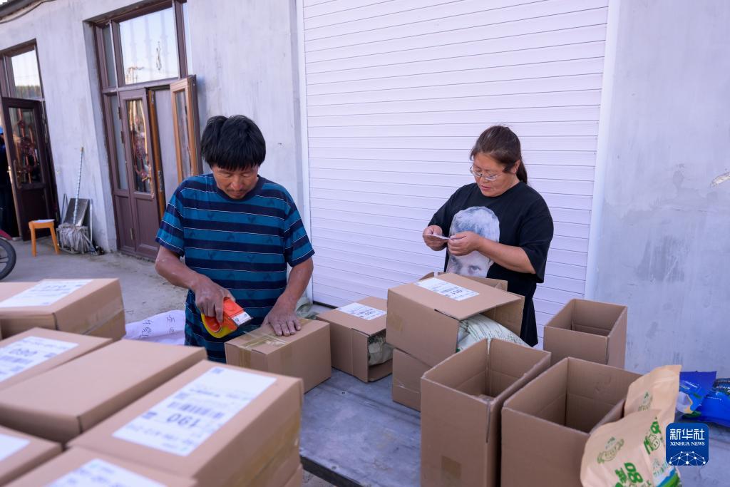 9月2日,阿爾山市西口村村民將當地特産打包,準備發快遞。