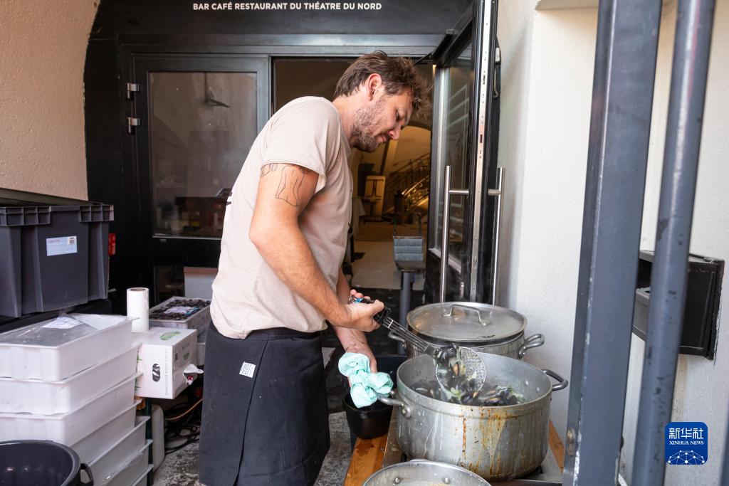 9月3日,在法國裏爾舊貨市場上,餐館工作人員烹制貽貝大餐。