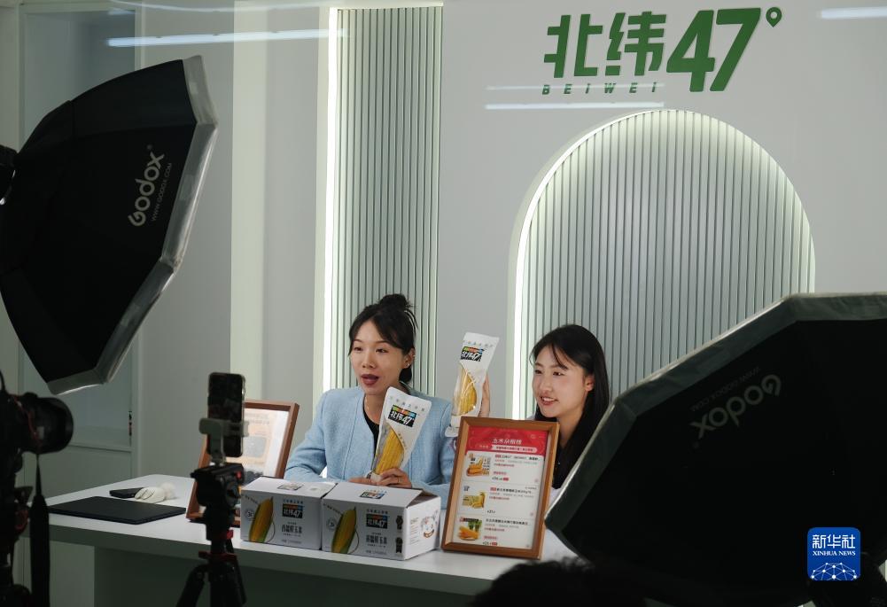 9月2日,在位於齊齊哈爾市依安縣的北緯四十七綠色有機食品有限公司,主播通過網絡平台銷售鮮食玉米。