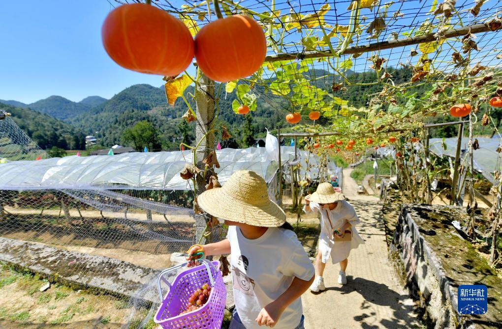 9月3日,游客在湖北省宣恩縣椒園鎮一採摘園裏游玩。