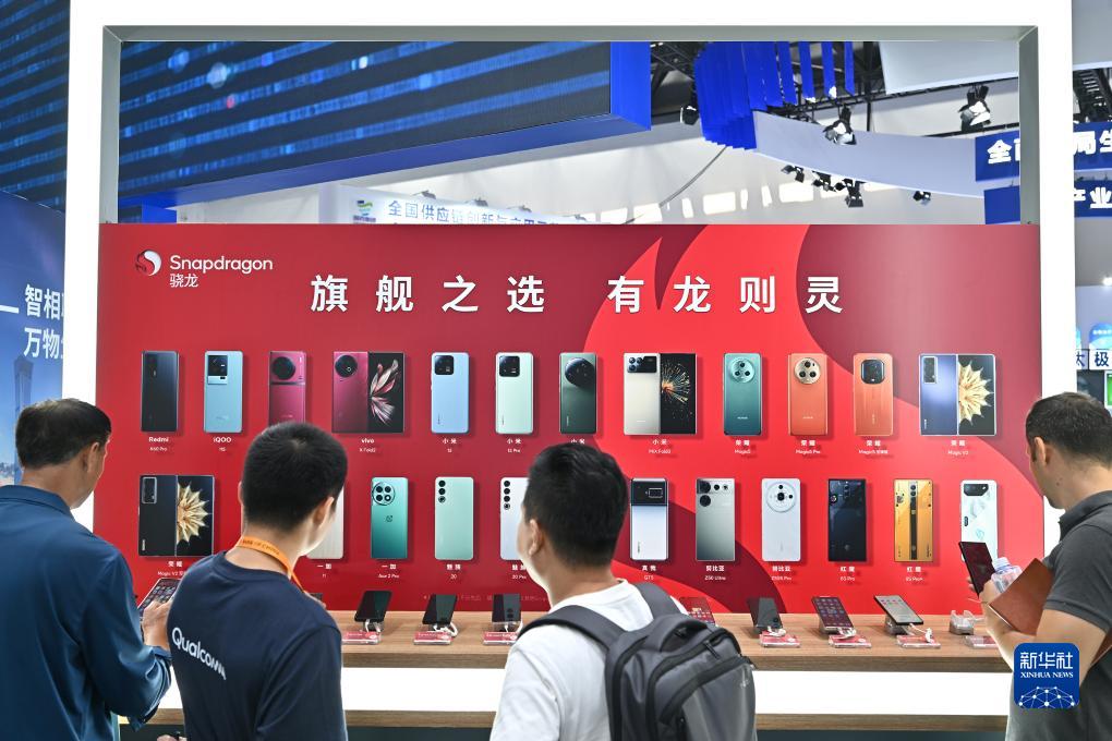 9月4日,參觀者在國家會議中心的高通展&了解搭載了高通驍龍芯片的手機。