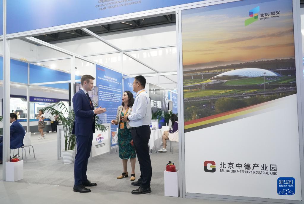 9月4日,與會者在服貿會國家會議中心的北京中德産業園展&洽談交流。