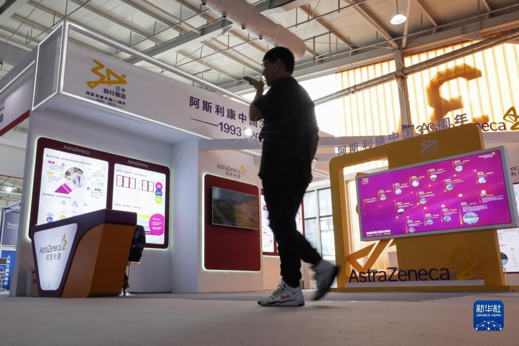 9月4日,參觀者走過首鋼園健康衞生服務展區的阿斯利康展&。