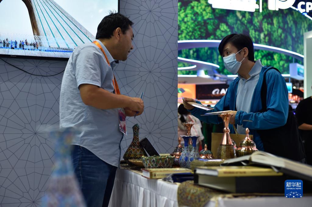 9月4日,在服貿會國家會議中心的伊朗展&,觀眾在了解伊朗手工藝品。