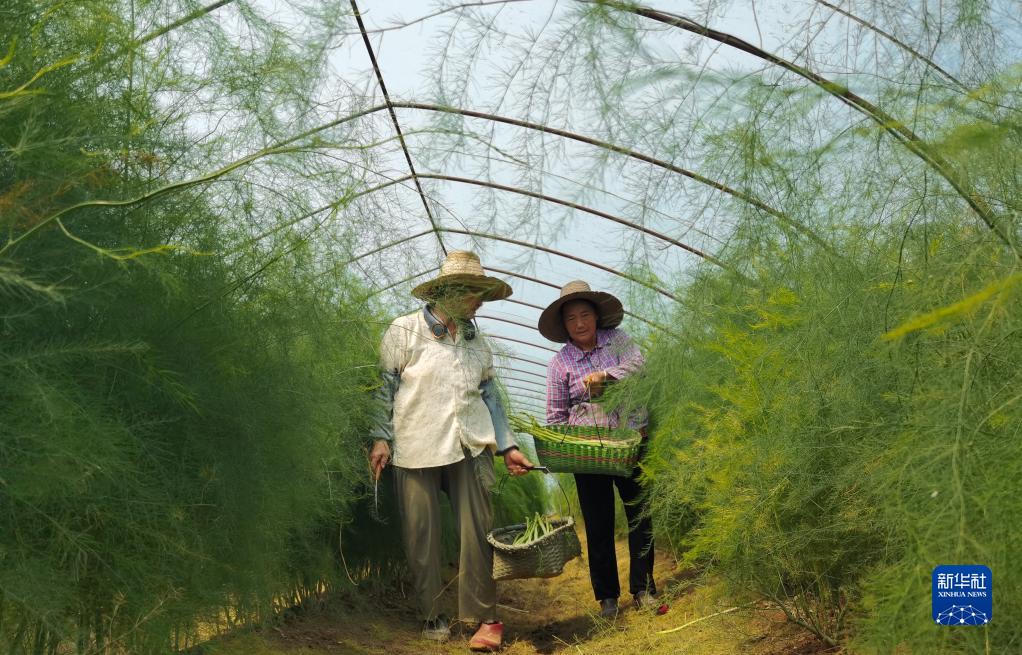 近年來,江西省南昌市石埠鎮西崗村引入種植經濟效益高、市場前景好的蘆筍,採用“公司+村集體+農戶”的經營模式,建設“夢飛田園”蘆筍産業示範區,創新蘆筍深加工産品,開發出蘆筍茶、蘆筍粉、蘆筍面、蘆筍酒、蘆筍果糕等下游産品,不斷推動蘆筍産業發展升級,壯大村集體經濟。目前西崗村已建成1500余畝核心示範區、100畝育種基地和新品種試驗站,蘆筍産業成為當地鞏固脫貧成果、推動鄉村振興的支柱産業。