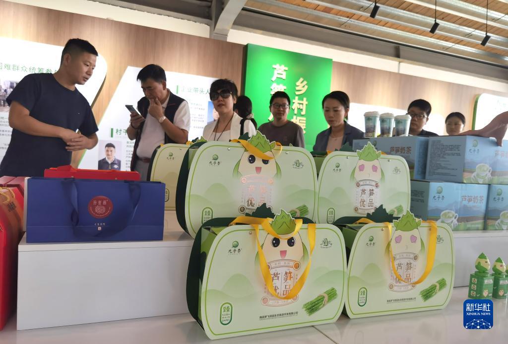近年來,江西省南昌市石埠鎮西崗村引入種植經濟效益高、市場前景好的蘆筍,採用“公司+村集體+農戶”的經營模式,建設“夢飛田園”蘆筍産業示範區,創新蘆筍深加工産品,開發出蘆筍茶、蘆筍粉、蘆筍面、蘆筍酒、蘆筍果糕等下游産品,不斷推動蘆筍産業發展升級,壯大村集體經濟。目前西崗村已建成1500余畝核心示範區、100畝育種基地和新品種試驗站,蘆筍産業成為當地鞏固脫貧成果、推動鄉村振興的支柱産業。