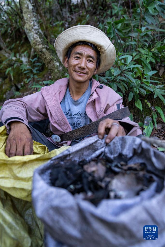 一位“採山人”在展示自己採集到的石耳(9月2日攝)。新華社記者 孫非 攝