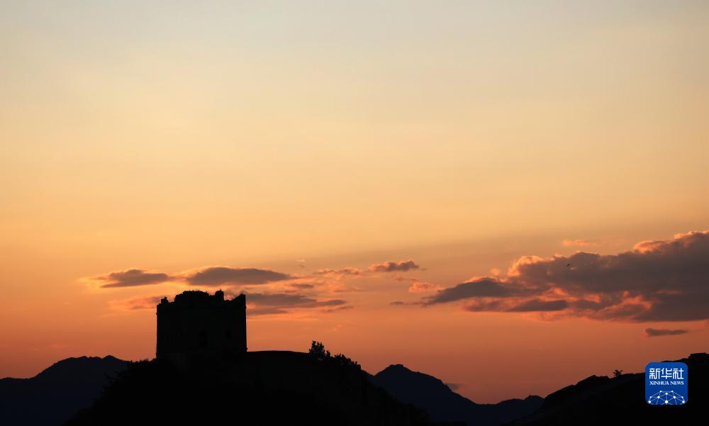 這是夕陽下的金山嶺長城景色(8月31日攝)。