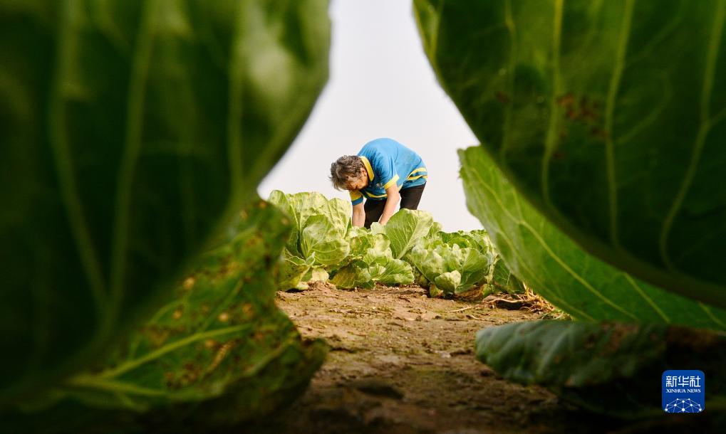 9月5日,菜農在河北省石家莊市欒城區吳郭村菜園裏管理包心菜。