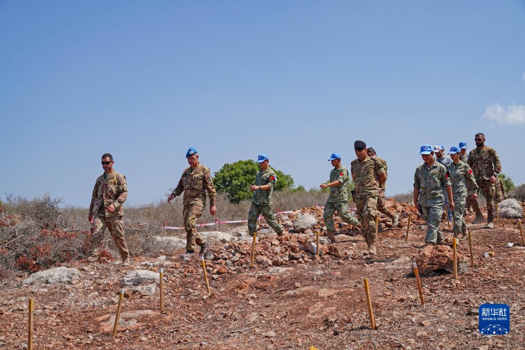 9月4日,聯合國駐黎巴嫩臨時部隊(聯黎部隊)西區司令喬瓦尼·布拉法准將(左二)進入黎巴嫩南部“藍線”附近的中國第21批赴黎維和部隊任務雷場。