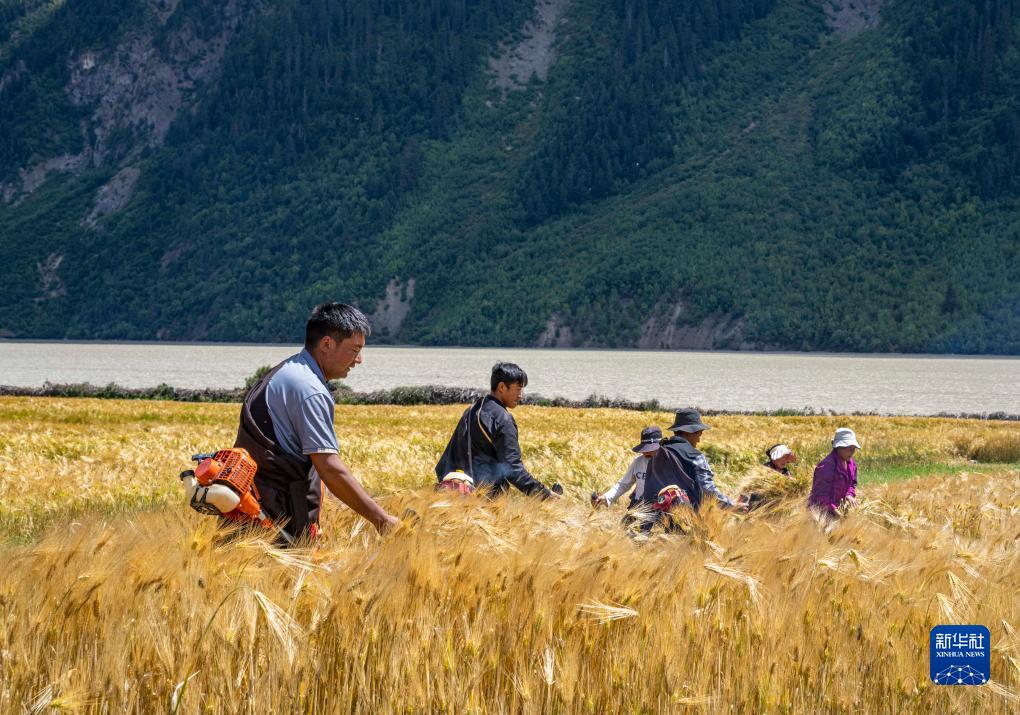 西藏昌都市八宿縣然烏鎮瓦巴村村民在收割青稞(9月4日攝)。