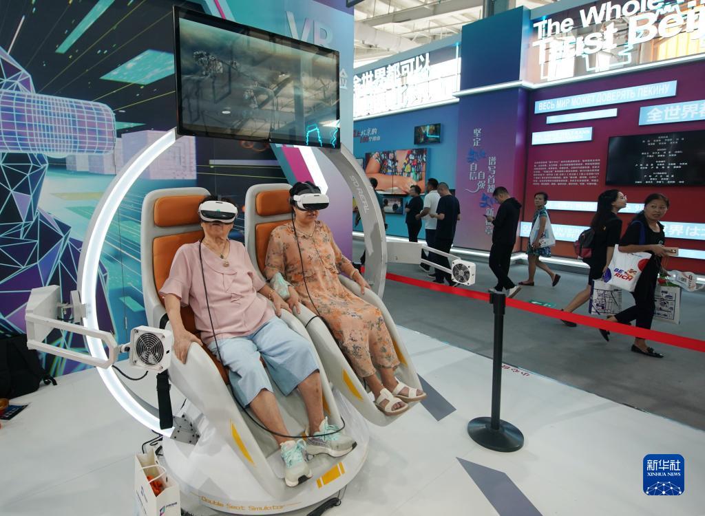 9月5日,參觀者在服貿會首鋼園區的文旅服務專題展內體驗一款VR觀影設備。