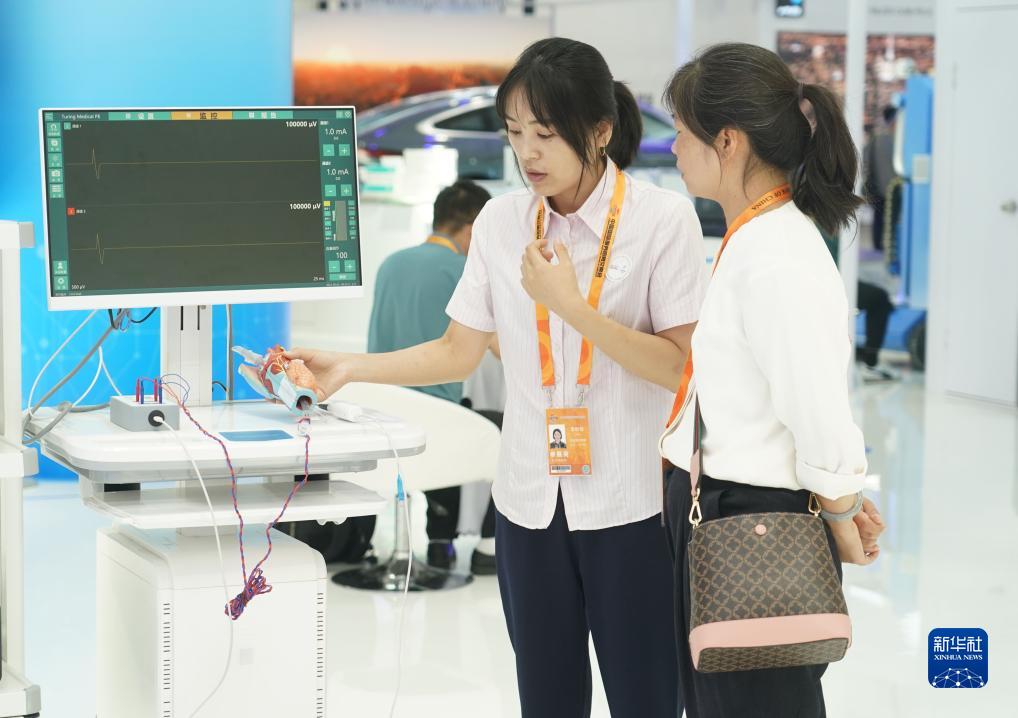 9月5日,參展商在服貿會首鋼園區介紹甲狀腺光電檢測平台。