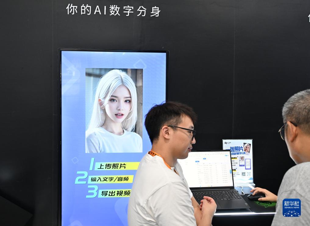 9月5日,在服貿會首鋼園區,參觀者了解AI數字人形象産品。