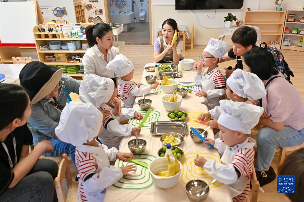9月4日,南京市首家公建公辦托育園——西城晨星曉小禾托育中心二期項目在建鄴高新區國際研發總部園正式開園,數十名3歲以下的小朋友在托育老師陪伴下愉快地玩樂、學習,讓在這裡工作的“職場父母”樓上上班,樓下帶娃。據介紹,該托育園可容納85個托位,根據附近産業園區內職工上班時段全年開放,讓“職場父母”上下班與接送孩子無縫銜接。
