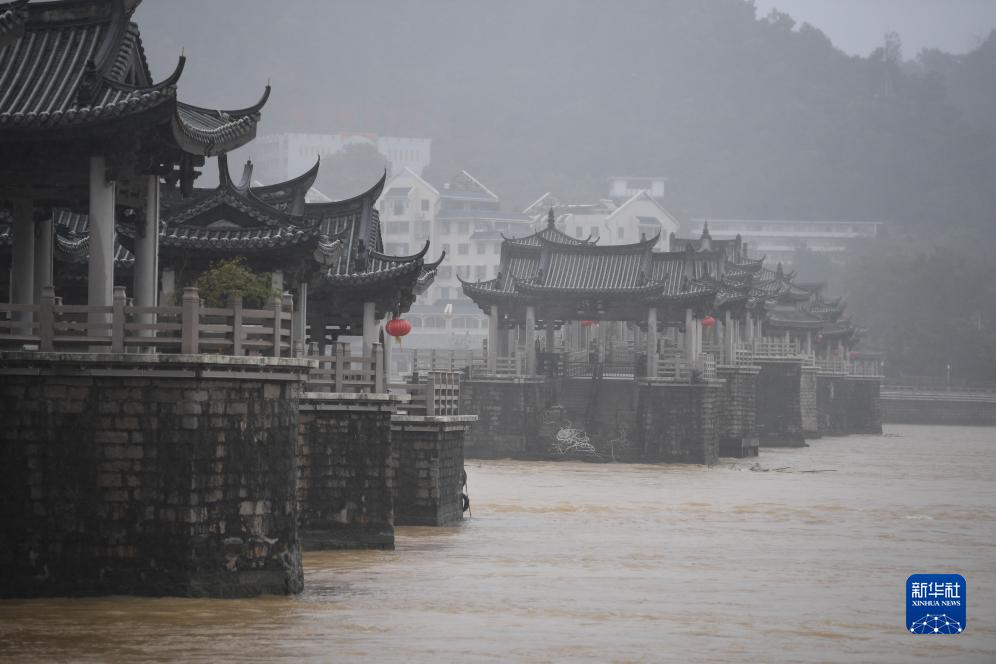 9月5日,受颱風“海葵”影響,廣東省潮州市廣濟橋景區暫停開放。強降水使韓江流速超出安全標準,梭船組成的浮橋已拆除。