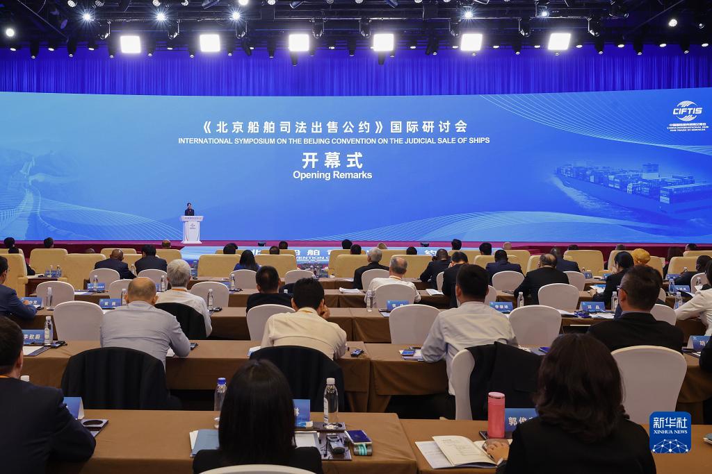 當日,《北京船舶司法出售公約》國際研討會在北京舉行。《北京船舶司法出售公約》是海商領域首個以中國城市命名的聯合國公約,是中國踐行真正的多邊主義、推動構建人類命運共同體的真實寫照。