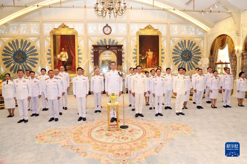 9月5日,在泰國曼谷律實宮,泰國總理賽塔·他威信(前排中)及新一屆內閣向國王瑪哈·哇集拉隆功宣誓就職。