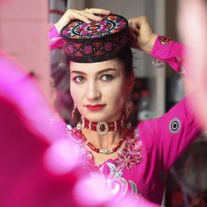 在新疆塔什庫爾幹塔吉克自治縣帕米爾旅游區游客服務中心,縣文工團演員唱歌跳舞歡迎游客(9月4日攝)。