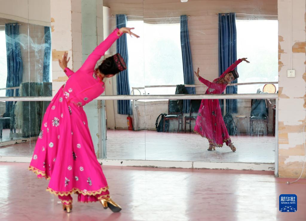 在新疆塔什庫爾幹塔吉克自治縣帕米爾旅游區游客服務中心,縣文工團演員在演出前做準備(9月4日攝)。