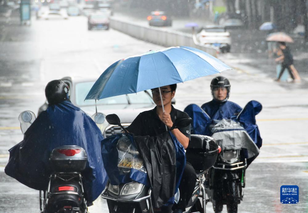 9月6日,在福州市晉安區福新路和六一路交叉口,市民冒雨出行。