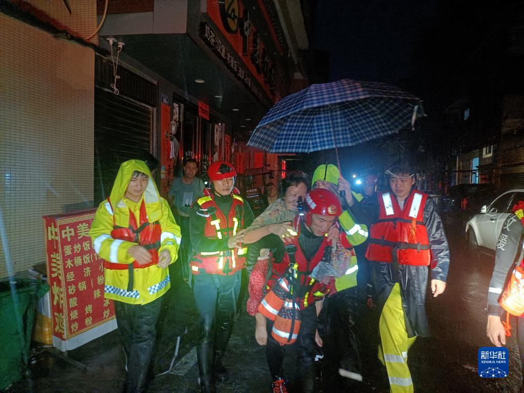 9月6日,在福州市長樂區玉田鎮,消防救援人員將一名被困家中的老人背出。