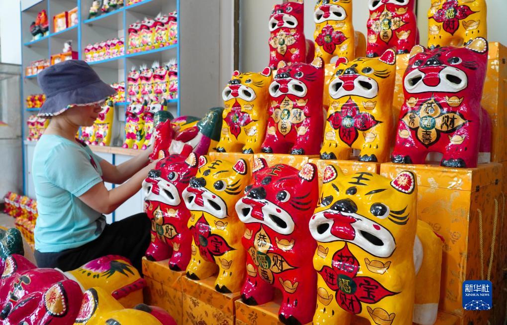 近年來,山東省高密市姜莊鎮以非遺代表性傳承人為引領,以非遺工坊為基礎,發展傳統泥塑産業。目前該鎮每年可加工泥老虎40多萬個,産品銷往全國各地,有力拓寬了當地群眾增收道路。泥老虎是高密市姜莊鎮聶家莊泥塑的代表品種之一,2008年聶家莊泥塑被列為國家級非物質文化遺産。