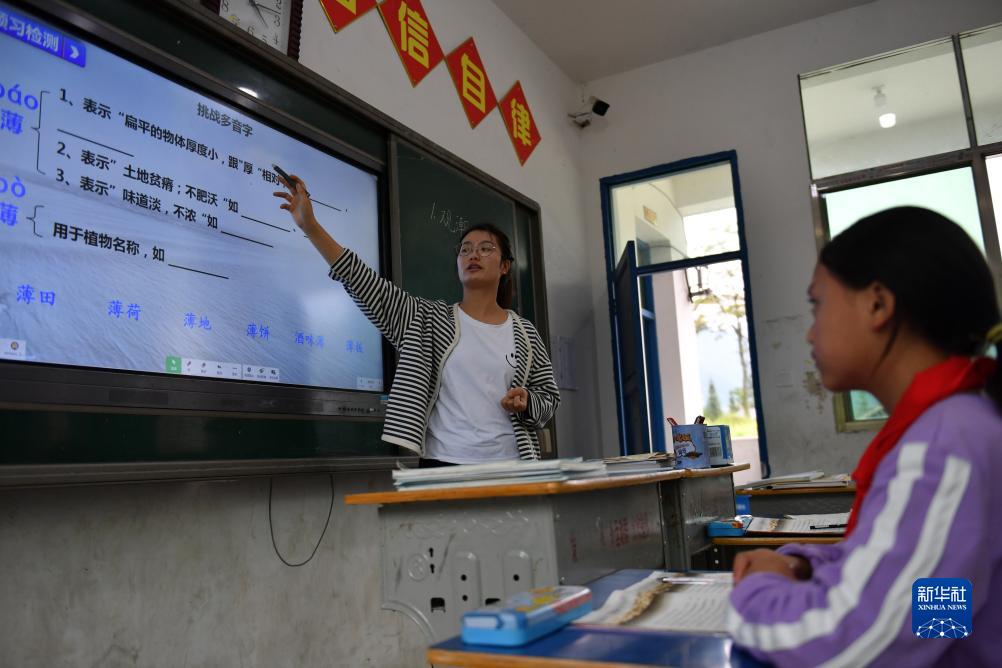 學校的主心骨是1985年就來這裡任教的校長段同山,曾經最困難的時候只有他一個老師和十幾個學生。如今曾在報木小學就讀、大學畢業後回來任教的劉鳳英,和今年剛從師範學校畢業的“00後”羅瀟一起採用複式教學的形式,為45個學生開展日常教學、文娛活動等。
