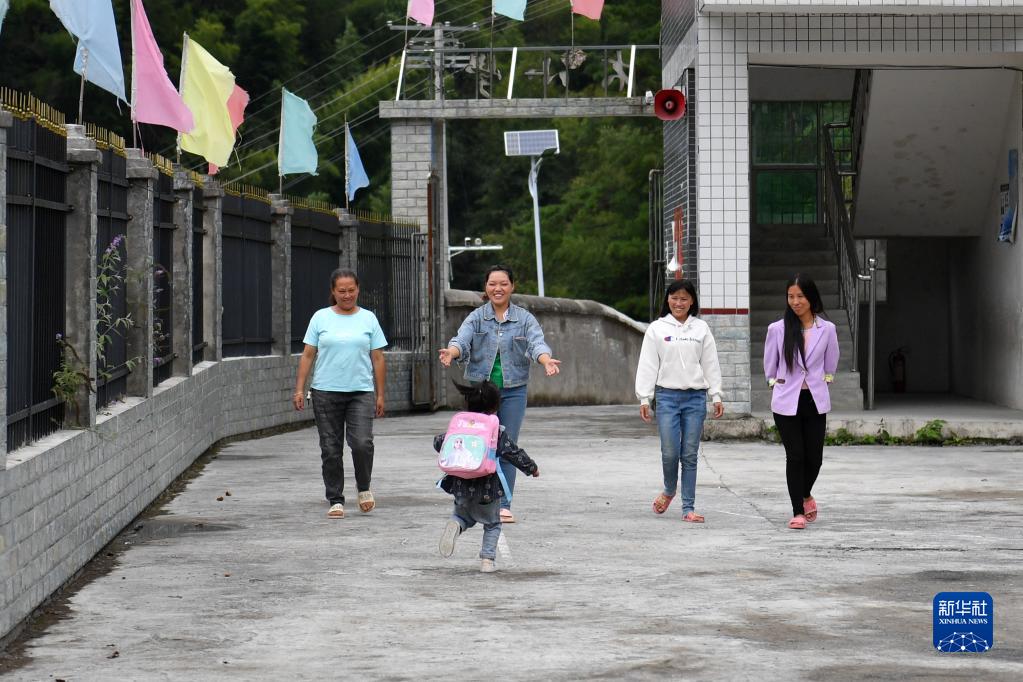 9月4日,報木小學一名學前班的學生放學後跑向家長。