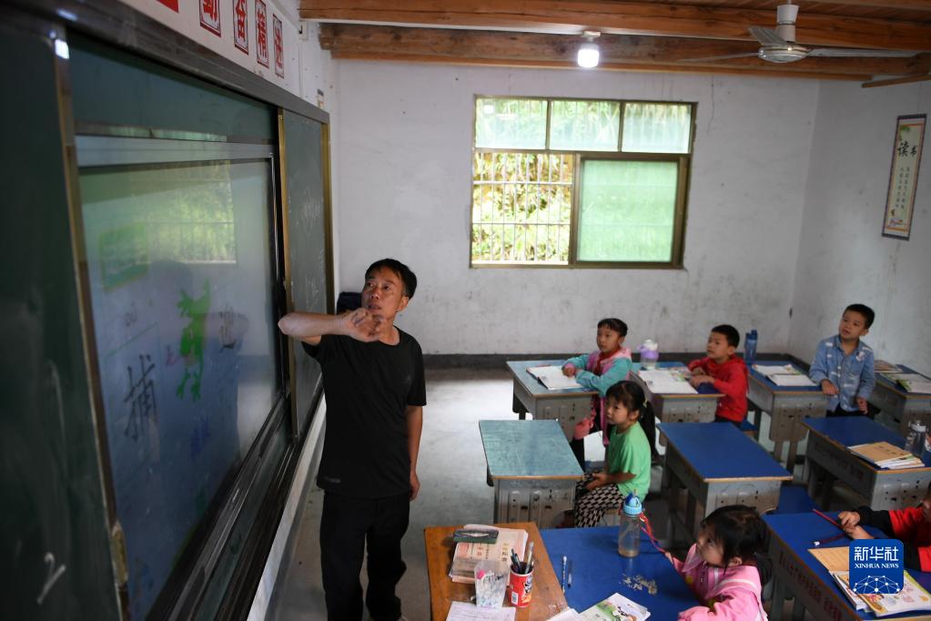 學校的主心骨是1985年就來這裡任教的校長段同山,曾經最困難的時候只有他一個老師和十幾個學生。如今曾在報木小學就讀、大學畢業後回來任教的劉鳳英,和今年剛從師範學校畢業的“00後”羅瀟一起採用複式教學的形式,為45個學生開展日常教學、文娛活動等。