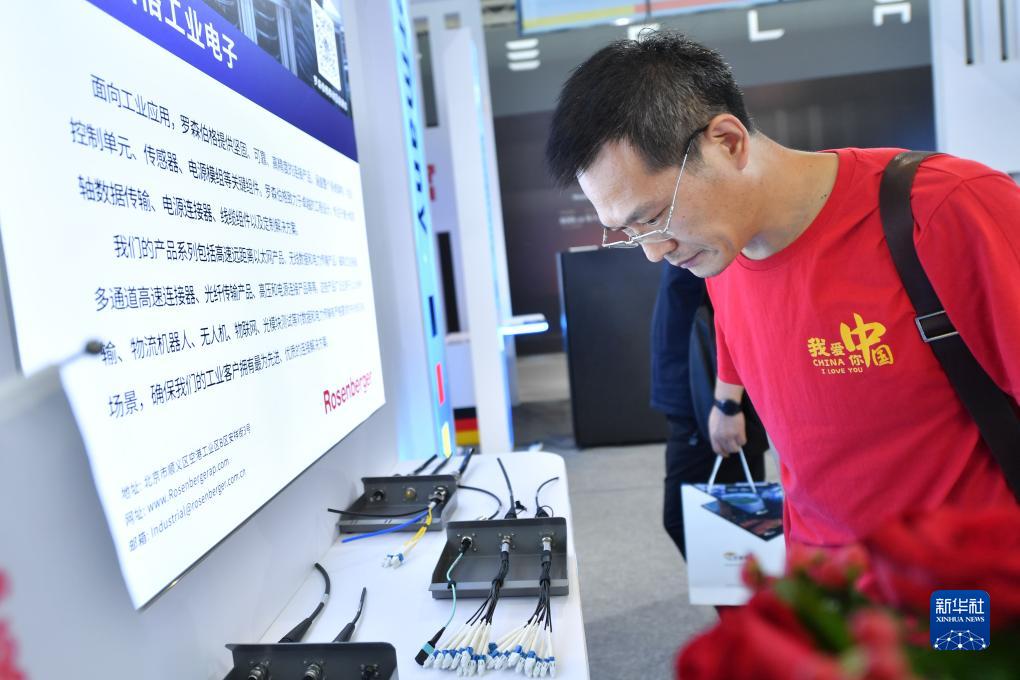 9月6日,參觀者在2023中國國際數字經濟博覽會德國館參觀工業電子産品。