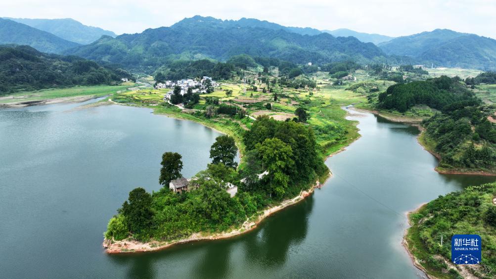 9月6日拍攝的貴州省黔東南苗族侗族自治州黃平縣舊州鎮㵲陽湖畔美景(無人機照片)。