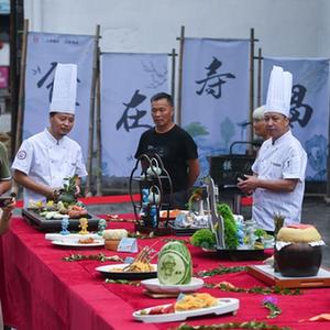 9月6日,在浙江省建德市壽昌古鎮開幕的古鎮好吃節上,由建德市餐飲協會製作的“魚躍亞運”“騰龍飛天”“亞運定勝”“金牌滿堂”等多道亞運主題菜品在現場展示,吸引了眾多市民的眼球。