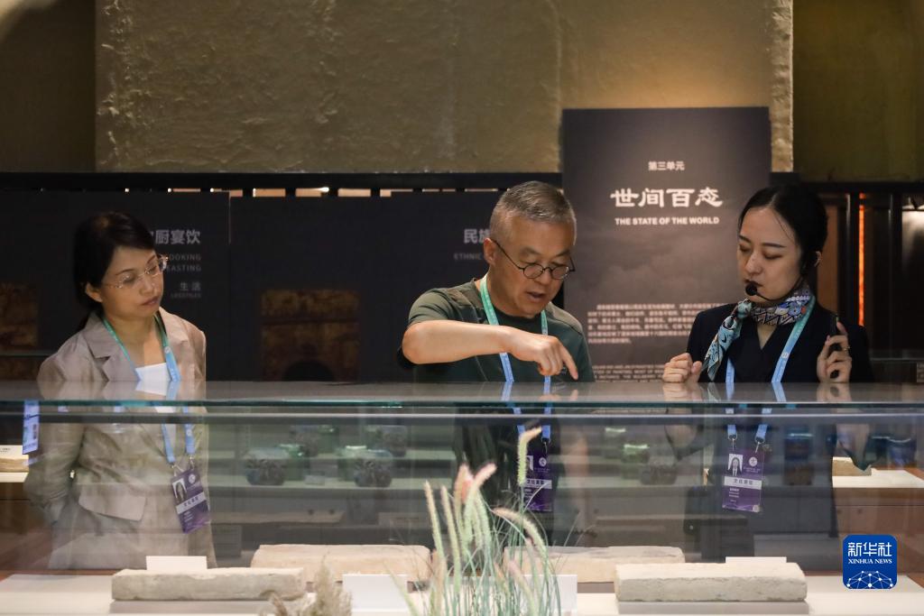 9月6日,與會嘉賓在第六屆絲綢之路(敦煌)國際文化博覽會上參觀酒泉魏晉壁畫墓複製展。