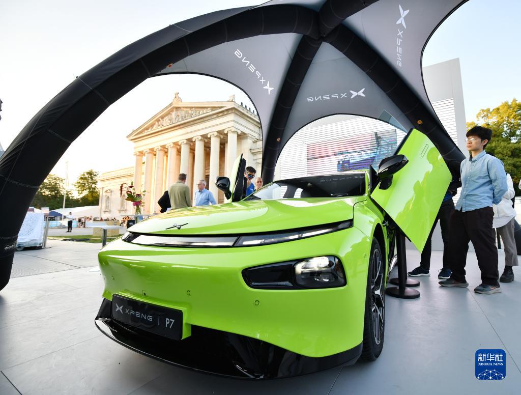 9月5日,人們在德國慕尼黑國際車展的城市公共展示區參觀小鵬汽車。