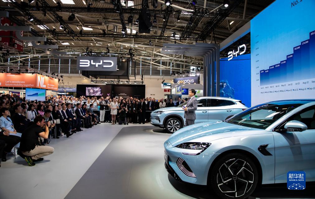 2023年德國國際汽車及智慧出行博覽會(慕尼黑國際車展)5日在慕尼黑開幕。據了解,相比上一屆博覽會,包括比亞迪、零跑、小鵬、商湯科技等在內的中國展商的數量今年翻了一番。