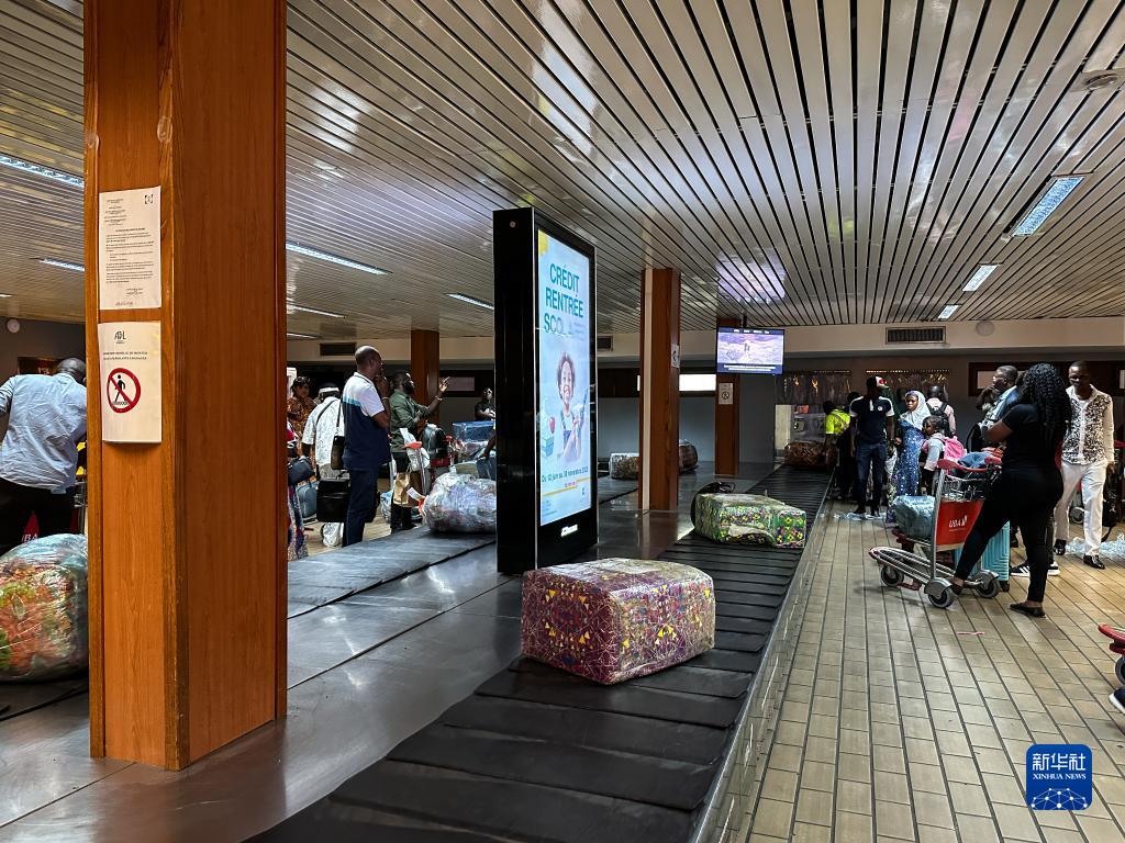 9月6日,在加蓬首都利伯維爾,乘國際航班抵達的旅客在利伯維爾國際機場內取托運行李(手機照片)。