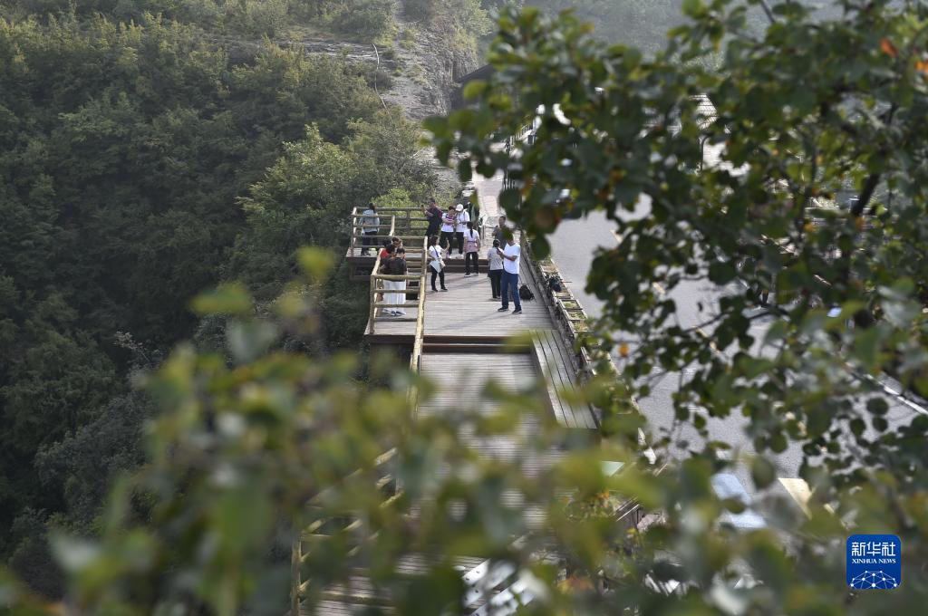 9月6日,游人在太行大峽谷中的一處觀景&上觀景拍照。