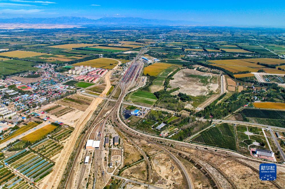 霍爾果斯站準軌場鳥瞰(9月6日攝,無人機照片)。