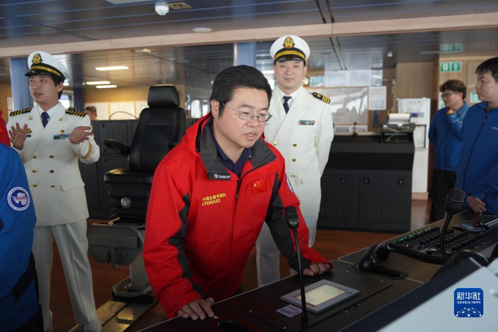 這是抵達北極點後,中國第13次北冰洋科學考察隊領隊王金輝在進行全船廣播,向全體隊員通報抵達北極點的消息(9月5日攝)。