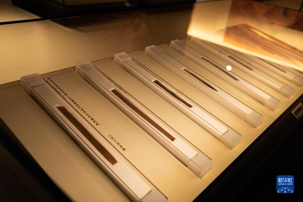 這是9月7日拍攝的甘肅簡牘博物館展廳內的部分簡牘文物。
