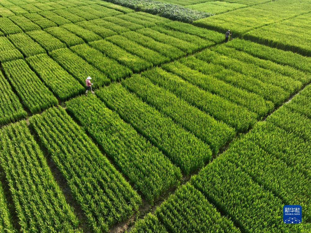 9月6日,在江蘇省連雲港市朝陽街道西莊村,農民在田間勞作(無人機照片)。