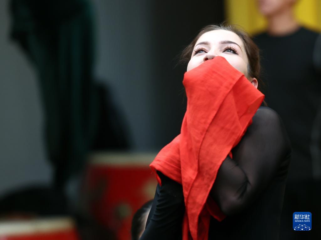 古麗巴努爾·庫爾恰克在排練舞蹈節目《花兒為什麼這樣紅》(9月4日攝)。